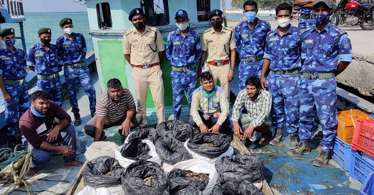 Three men were caught smuggling nearly 1,000kg of sea cucumber – worth £500,000 on the international market, according to the Indian Coast Guard – from Tamil Nadu in India to Sri Lanka via the Gulf of Mannar last August, with a similar case in last March.